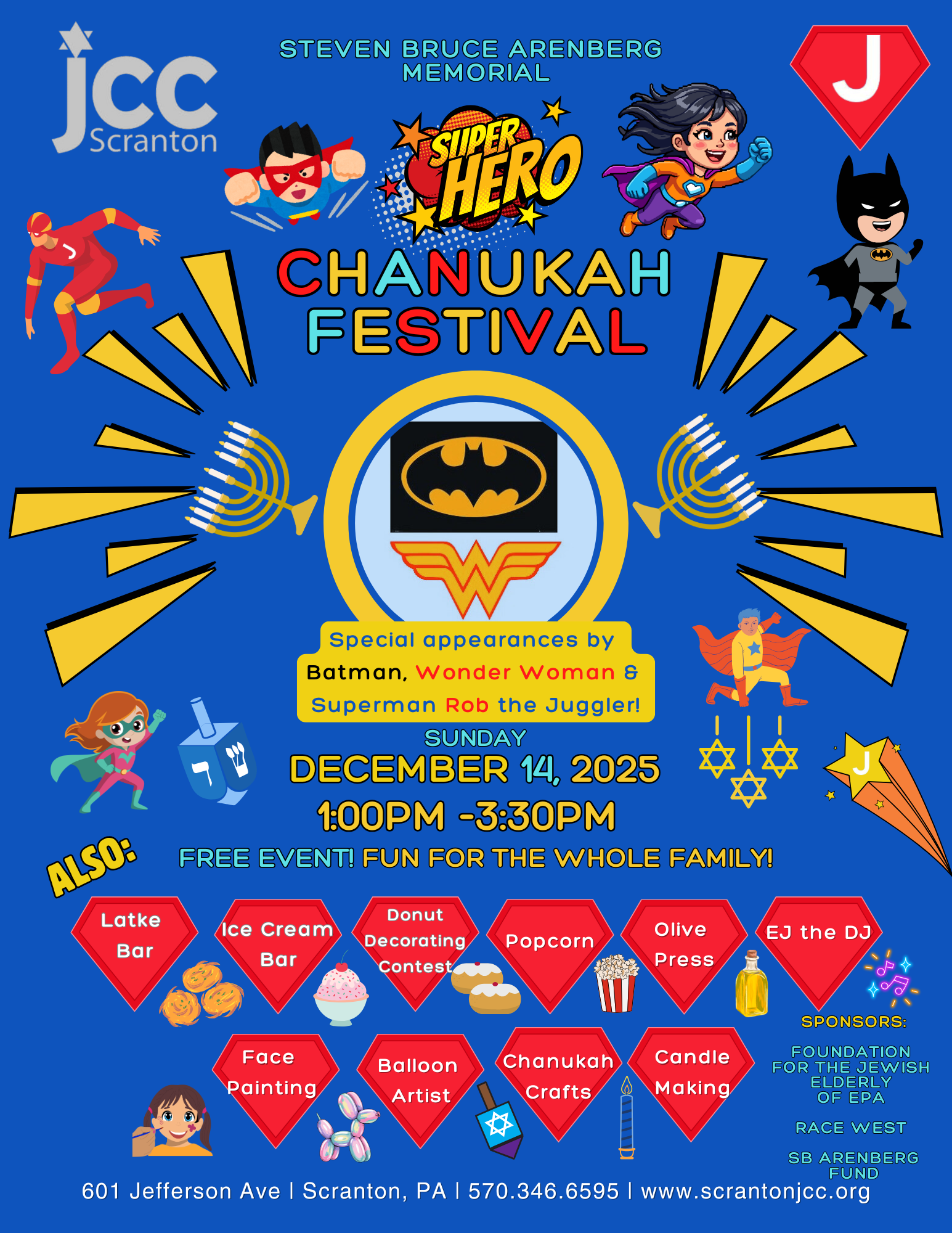 It’s the annual Steven Bruce Arenberg Memorial JCC SUPER HERO Chanukah Festival